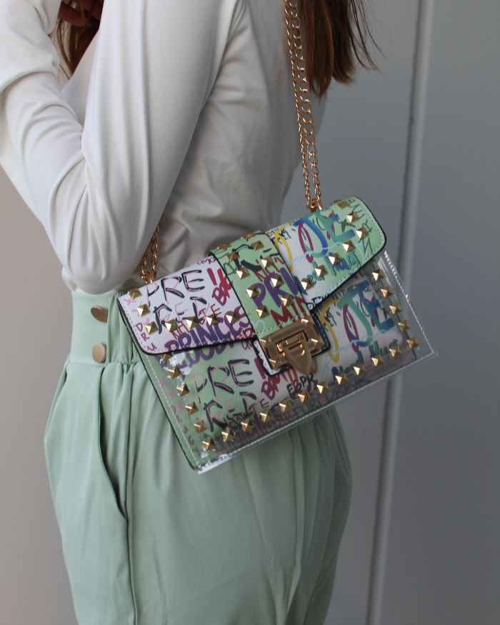 Tauchen Sie ein in die Welt der Eleganz mit der Modas Aleja Handtasche, einem Must-have für jede modebewusste Dame. Diese Umhängetasche besticht durch ihr einzigartiges Graffiti-Design und den hochwertigen Acryl-Außenmantel, der Langlebigkeit verspricht. Goldfarbene Verschlussdetails verleihen dem Accessoire einen Hauch von Luxus, während das Ledergriffmaterial einen angenehmen Tragekomfort gewährleistet. Ideal für den täglichen Gebrauch oder besondere Anlässe, ist diese Tasche die perfekte Kombination aus Stil und Funktionalität.