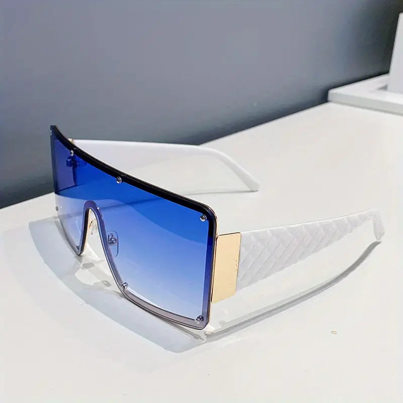 Verleihen Sie Ihrem Look mit dieser modischen, quadratischen Sonnenbrille für Damen einen Hauch von Eleganz. Der zeitlose weiße Rahmen aus hochwertigem Kunststoff ist nicht nur ein modisches Statement, sondern bietet auch einen angenehmen Tragekomfort. Kombiniert mit getönten UV400-Gläsern, die Ihre Augen vor schädlichen Sonnenstrahlen schützen, ist diese Sonnenbrille ein unverzichtbarer Accessoire für jede Gelegenheit. Die blaue Glasfarbe fügt eine stilvolle Note hinzu und sorgt für einen ansprechenden Kontrast.